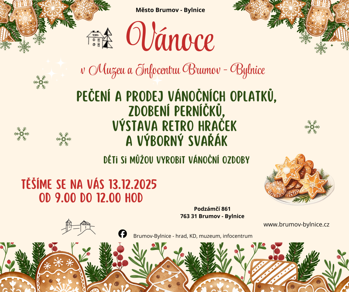 Doprovodný program v muzeu a infocentru v rámci Předvánočního jarmarku na náměstí - pečení a prodej vánočních oplatků, zdobení perníčků, dílnička vánočních ozdob a výborný svařák