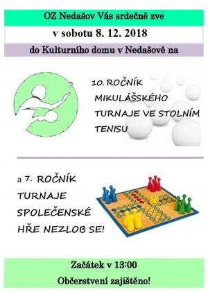 OZ Nedašov srdečně zve všechny neregistrované hráče ze Závrší, včetně rodáků, na tradiční turnaj.Přihlásit se můžete do 5. 12.2018 u paní Cíchové.