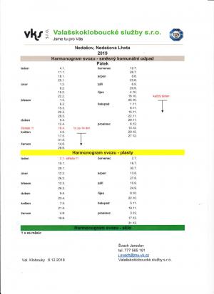 Harmonogram svozu odpadu 2019