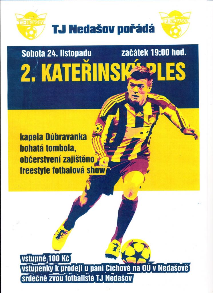 TJ Nedašov srdečně zve na 2. Kateřinský ples, který se bude konat v sobotu 24. listopadu v Kulturním domě Nedašov.
