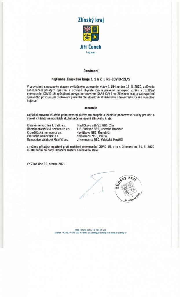Rozhodnutí hejtmana Zlínského kraje č. 5