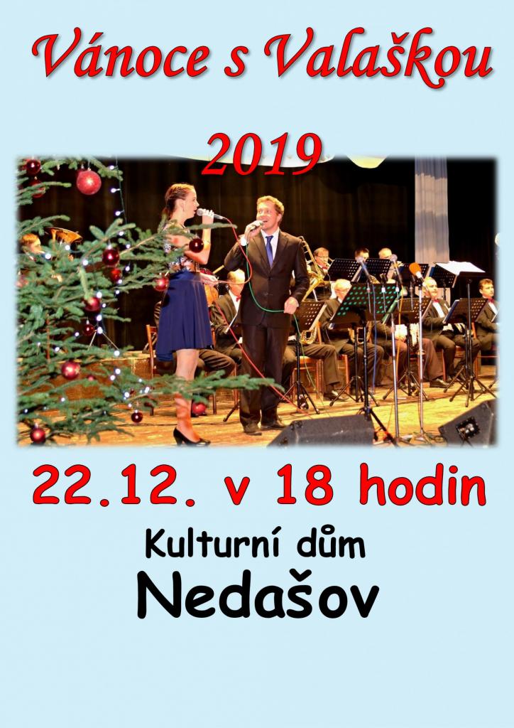 Zastupitelstvo obce Nedašov zve na vánoční koncert Vánoce s Valaškou v neděli 22.12.2019 od 18. hodin v Kulturním domě Nedašov.